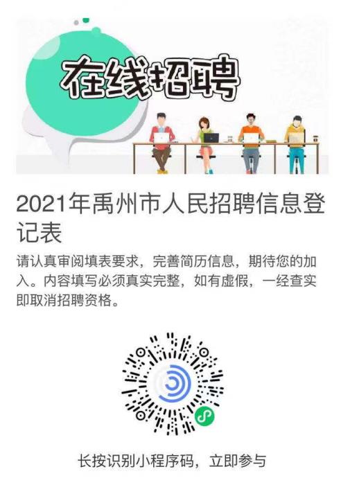 (1)扫描下方二维码填写禹州市人民医院2021年招聘信息登记表,进行个人信息登记;