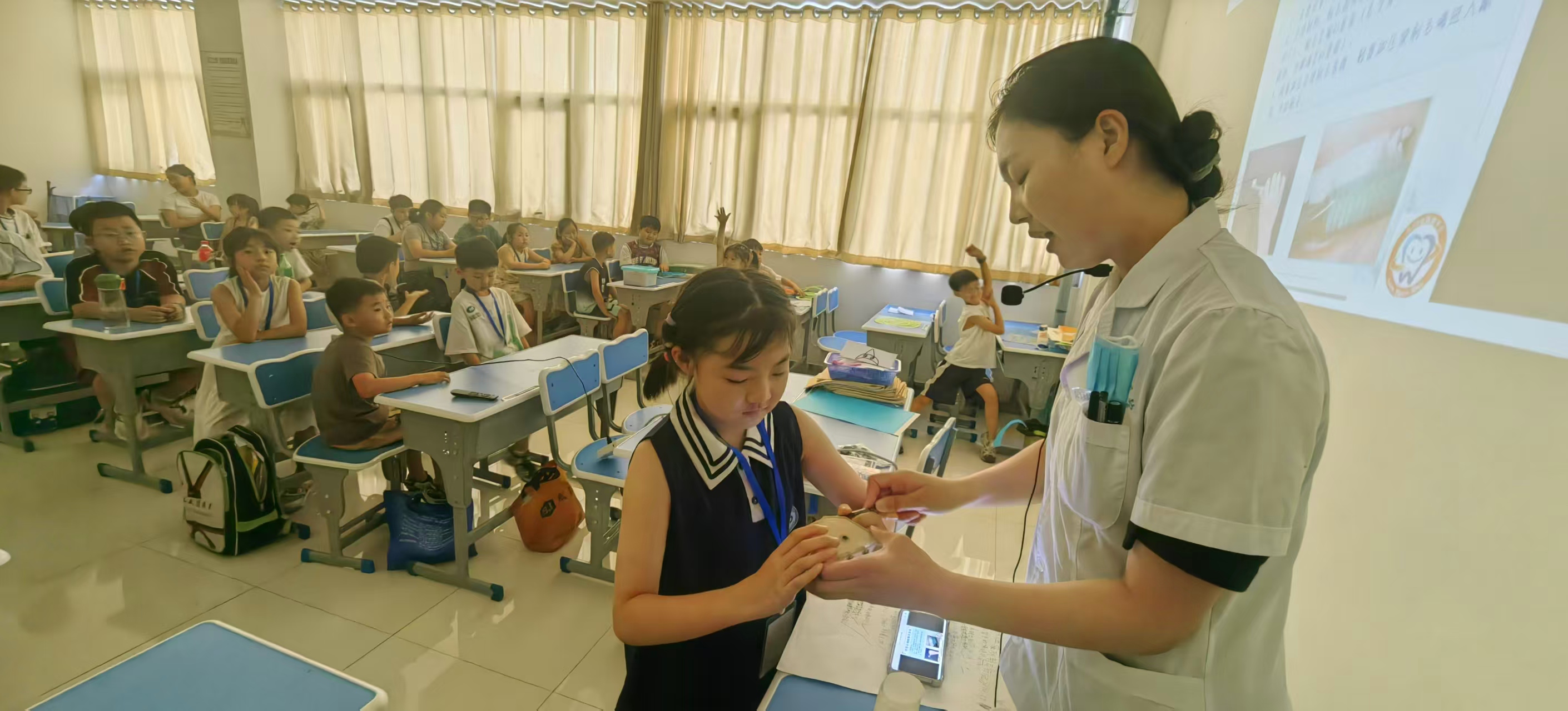 牙科医师给孩子们讲解牙齿健康知识