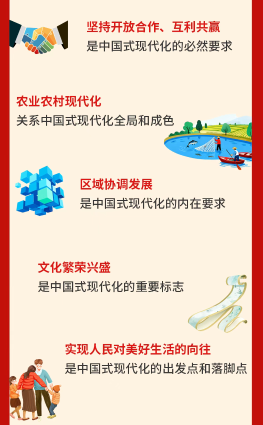 以中国式现代化全面推进强国建设、民族复兴伟业,是全党全国各族人民在新时代新征程的中心任务。在《习近平谈治国理政》第五卷中,中国式现代化的理论与实践贯穿始终,进一步深化了党对建设什么样的社会主义现代化强国、怎样建设社会主义现代化强国的认识。一起学习“中国式现代化”的丰富内涵!